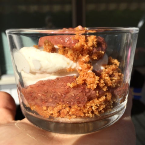 Rabarberkompott med mandelcrunch & vaniljgrädde